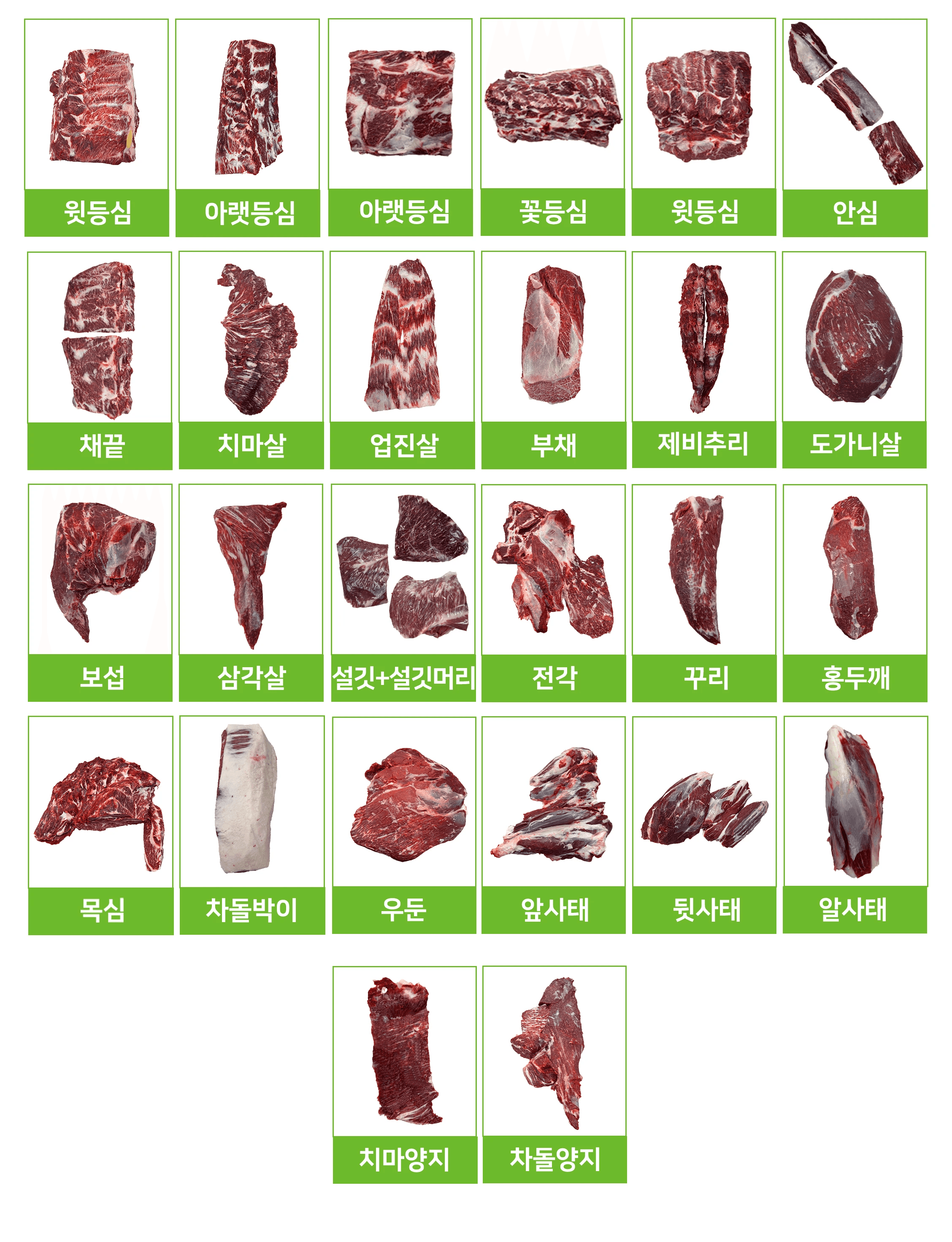 부위별 특징을 한눈에 확인하고 취향에 맞는 고기를 선택해보세요.